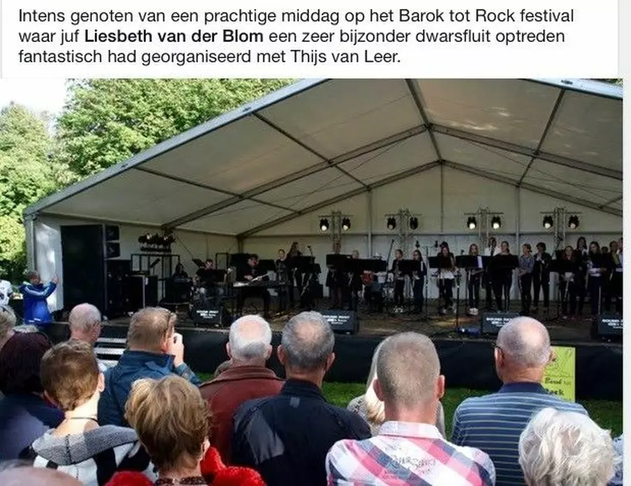 Hallo, ik ben Liesbeth van der Blom. Ik ben fluitiste en docente dwarsfluit aan het Cultuurcentrum (voorheen muziekschool) in Heemskerk, waar ik ook Muziek op Schootcursussen geef aan jonge kinderen (van 1,5 tot 4 jaar), en waar ik (ook met veel plezier) leiding geef aan twee dwarsfluitleerlingen ensembles, en een volwassen dwarsfluitensemble.