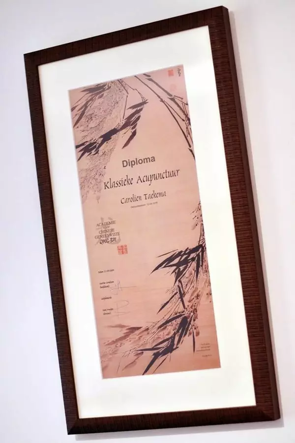 Ik zelf en mijn hond hebben enorm veel baat gehad bij acupunctuur en het fascineerde mij enorm dat er zo veel gedaan kon worden met een paar naalden. Daardoor besloot ik mij op te geven bij Academie Qing Bai voor de opleiding Chinese Geneeswijzen. Na dat jaar ben ik verder gegaan met de tweejarige opleiding acupunctuur. In maart 2009 heb ik mijn diploma behaald. In juni 2009 heb ik de opleiding Westerse Medische Basiskennis afgerond zodat ik lid kon worden bij de beroepsvereniging ZHONG.